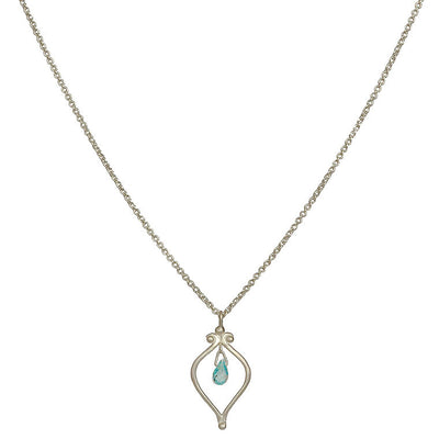 The pendant is 1" long sterling silver with a blue zircon briolette center. It has a cable link chain and has a soft satin finish. The yellow is a rich gold vermeil on silver.